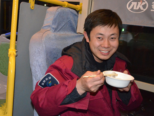 志愿者提前完成元宵、鍋、碗筷等準備工作后,活動(dòng)當天按時(shí)到達各站房,為一線(xiàn)煮一碗的元宵,為每一位一線(xiàn)員工送去一碗熱騰騰的元宵。當夜幕來(lái)臨時(shí),志愿者也早早在開(kāi)福寺停保場(chǎng)做好了前期的準備工作,等待著(zhù)駕駛員下班回場(chǎng)。一輛輛車(chē)輛進(jìn)場(chǎng),再為一位位駕駛員端去碗元宵,“有元宵吃呀”、“這元宵好吃,暖和”聽(tīng)著(zhù)駕駛員這一句那一句,作為志愿者的我們心里也是暖暖的。當然,也不能忘記給機務(wù)員、安全員、點(diǎn)鈔員、保安、加油師傅送去一碗元宵,讓堅守在崗的每一位工作人員都能感受到志愿者的心意。