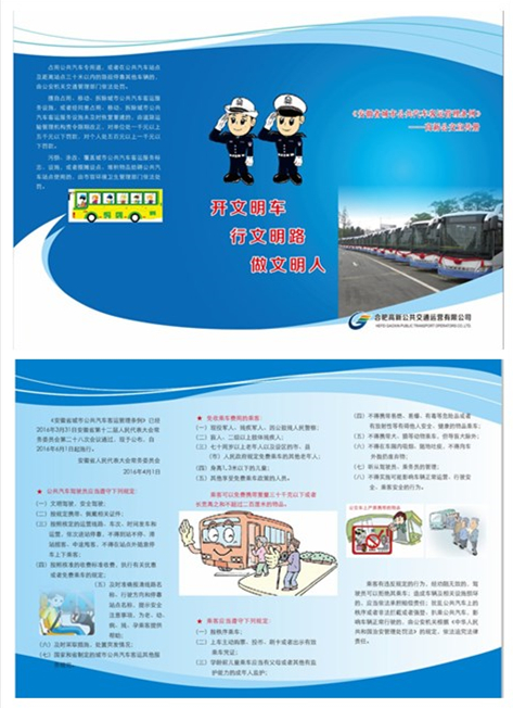 宣傳冊?xún)热葜饕ü财?chē)駕駛員應當遵守的規定、免費乘車(chē)費用的乘客范圍、乘客應當遵守的規定、乘客違法規定的處理及占用公共汽車(chē)專(zhuān)用道等處理辦法。同時(shí),公司組織4個(gè)志愿者服務(wù)小組,分散在銀科路口、蜀南庭苑、省電氣學(xué)校等公交站臺向過(guò)往行人及乘客宣傳《條例》內容,并發(fā)放宣傳冊。通過(guò)這些印刷精美,內容豐富的宣傳冊,讓《條例》知識不再枯燥,更易被了解。
