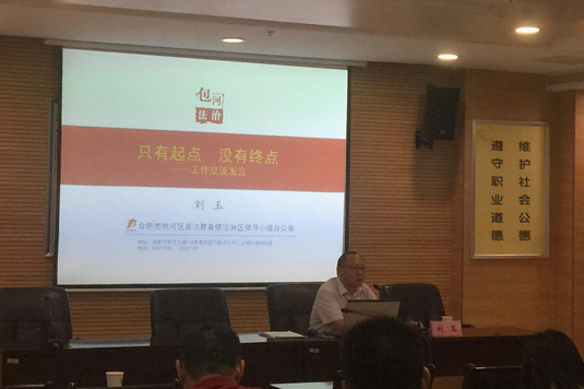 本次活動(dòng)首先由包河區司法局副局長(cháng)劉玉以“只有起點(diǎn),沒(méi)有終點(diǎn)”為題,從普法及其歷程、包河區普法工作的主要做法和其參與普法工作的體會(huì )開(kāi)展工作交流發(fā)言,劉玉強調普法工作應“圍繞中心,緊跟上級;整合資源,借力而行;立足實(shí)際,打造特色;注重宣傳,規范臺賬”。隨后,安徽省律協(xié)企業(yè)法律顧問(wèn)專(zhuān)業(yè)委員會(huì )副主任詹濤開(kāi)展了“從新《行政訴訟法》的實(shí)施談依法行政中的若干問(wèn)題”的講座,通過(guò)大量的實(shí)際案例講述了《行政訴訟法》的相關(guān)內容,使在座人員深刻的了解到在工作中依法處理事情的重要性。