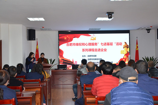為進(jìn)一步增強員工情緒調節能力,提升員工家庭和諧關(guān)系。11月11日,由合肥市婦聯(lián)主辦,高新區婦聯(lián)承辦組織的“維權和心理服務(wù)”七進(jìn)基層活動(dòng),在高新公交文曲路停保場(chǎng)舉辦。