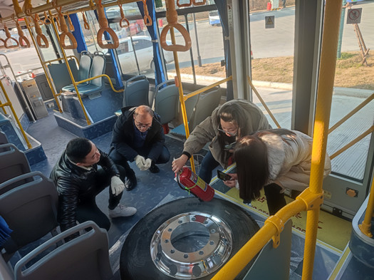 新車(chē)送到公司后,高新公交安排人員參加驗車(chē)工作,在安凱公司售后人員的配合下,驗車(chē)人員們根據各自分工有條不紊的對車(chē)載電子設備、安全設施、空調裝置等進(jìn)行了逐項查驗,同時(shí)就駕駛區域隔離設施設置、乘客座椅舒適度等進(jìn)行著(zhù)重檢查。在車(chē)內設備檢查結束后,又繼續對車(chē)輛車(chē)門(mén)、各艙門(mén)開(kāi)關(guān)、外觀(guān)覆蓋件、可見(jiàn)部位裝配等車(chē)外配件做了逐一核對,其中針對雨刮器、車(chē)輛燈光等部分當場(chǎng)進(jìn)行了測試。
