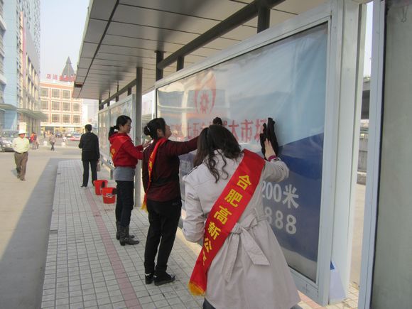 此次活動(dòng)分為兩個(gè)小組,一組人員負責清洗公交站牌,清除站臺上的小廣告,一組人員負責對公交車(chē)輛清潔大掃除,對車(chē)內衛生死角逐一清掃,并用抹布擦除頑垢,用長(cháng)火鉗徹底清理車(chē)廂后排位置細縫中垃圾。