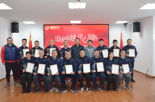 在大會(huì )熱烈的氛圍中,公司領(lǐng)導班子向獲得“服務(wù)之星”的一線(xiàn)員工頒發(fā)榮譽(yù)獎杯及證書(shū)。公司黨支部書(shū)記、總經(jīng)理孔強首先對獲得榮譽(yù)的駕駛員給予肯定,并對他們的辛勤付出表示感謝,同時(shí)勉勵他們再接再厲,發(fā)揮模范帶頭作用,讓更多的駕駛員加入服務(wù)之星行列,最后向獲獎員工致以新春的祝福。
